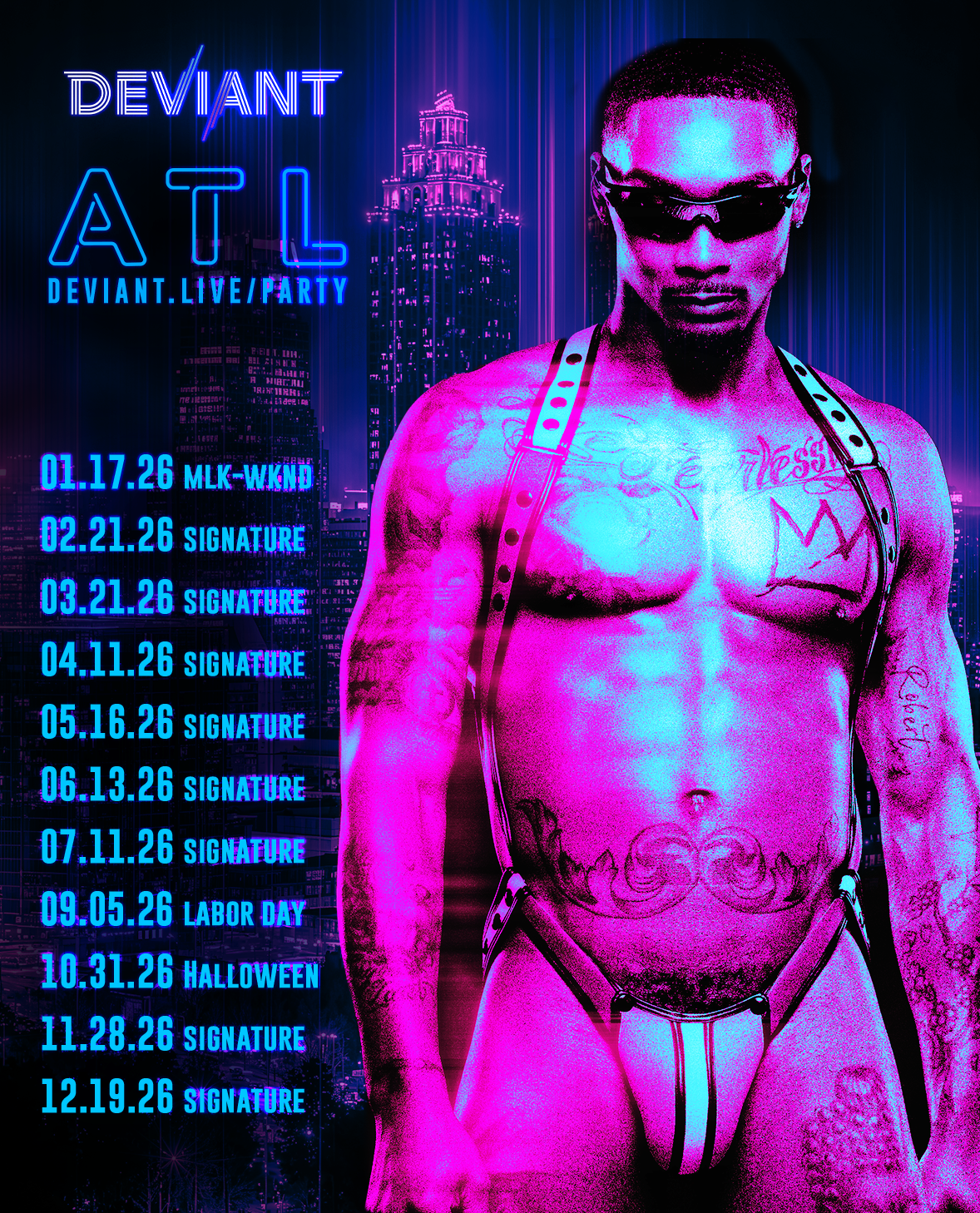 Deviant Events is an intentionally sex-positive and body-positive environment; esteeming people of ALL body shapes, sizes, and shades. No body-shaming or slut-shaming is permitted in our dance revolution.